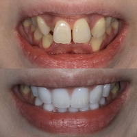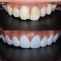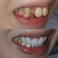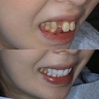 - 治療説明 セラミック矯正とは前歯歯並び、色、形をセラミッククラウンを用いて美しくする方法です。
