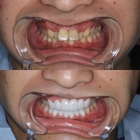 - 治療説明 セラミック矯正とは前歯歯並び、色、形をセラミッククラウンを用いて美しくする方法です。