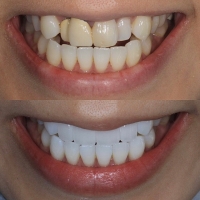 - 治療説明 セラミック矯正とは前歯歯並び、色、形をセラミッククラウンを用いて美しくする方法です。